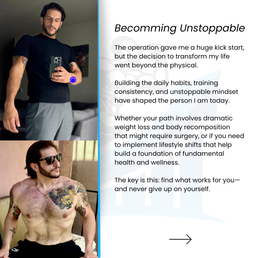 Now I help others take similar control of their life through simple, sustainable nutrition, fitness, and mindset protocols.